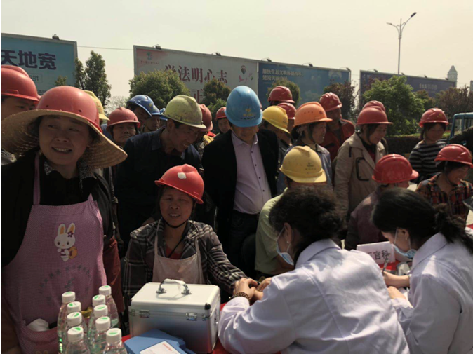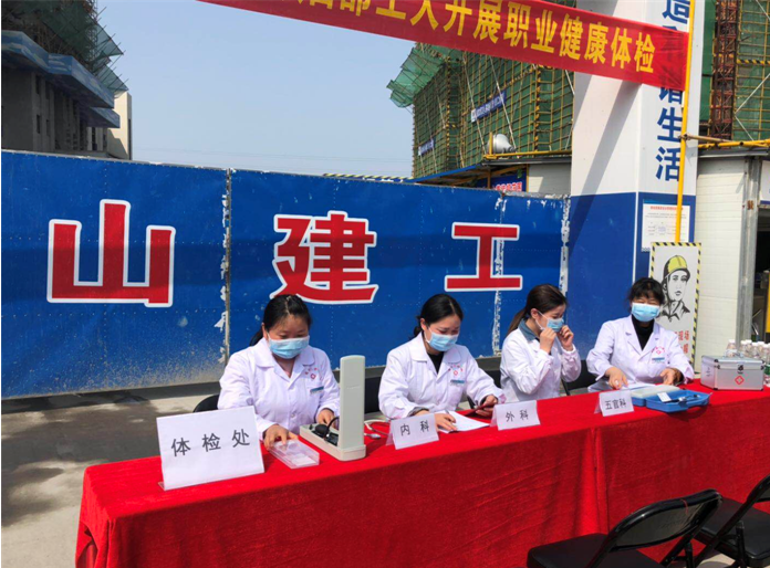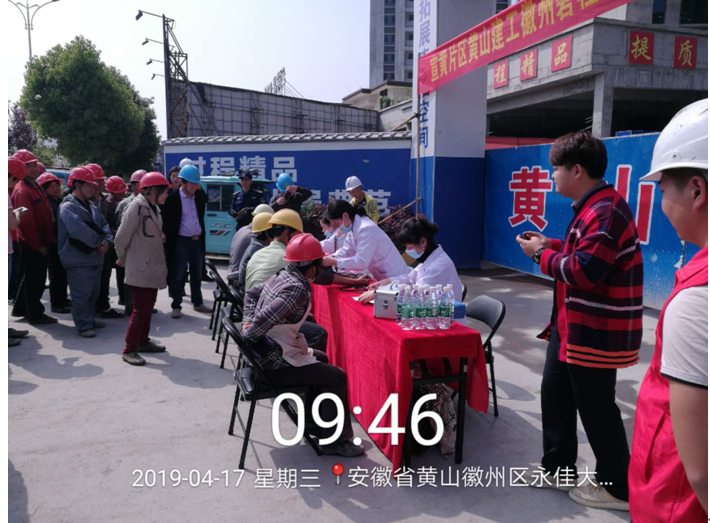 2019年4月17日上午9时,华体会体育官方网站-华体会体育(中国) 承建的徽州碧桂园德源项目工程东大门,人声鼎沸、欢声笑语,每个人脸上都洋溢着幸福的笑容,他们排着队,有组织、有秩序地参加由碧桂园德源工程施工项目部组织的“关爱健康、免费体检”活动。此次体检活动邀请了屯溪同仁门诊部的四名医生,分科体检,对每位职工的心率、血压、外科、口腔等做了细致的检查,并做好体检记录,同时对工友们关心的日常生活问题、常识做了解答和温馨提示,此次项目部参加体检人员惠及95名。本次活动是为了增强员工关怀,保障员工身体健康,营造”平安、和谐、幸福、美丽”的示范工地。