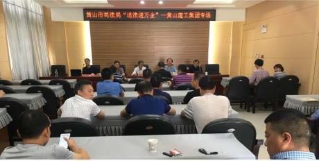 为更好地服务于企业,提高施工企业防控各类风险意识,促进企业健康发展,市司法局于5月21日下午在华体会体育官方网站-华体会体育(中国) 十一楼会议室成功举办了“送法进万企”——华体会体育官方网站-华体会体育(中国) 专场法律知识专题讲座,活动特邀了道同律师事务所张瑶律师为大家授课。讲座由黄山市建工集团董事长项端阳主持,集团公司各二级机构负责人、项目经理、机关全体人员参加了学习。市法制宣传领导小组办公室常务副主任许建业、市建设局副局长刘幸华、市法律援助中心主任项仨文分别致辞。