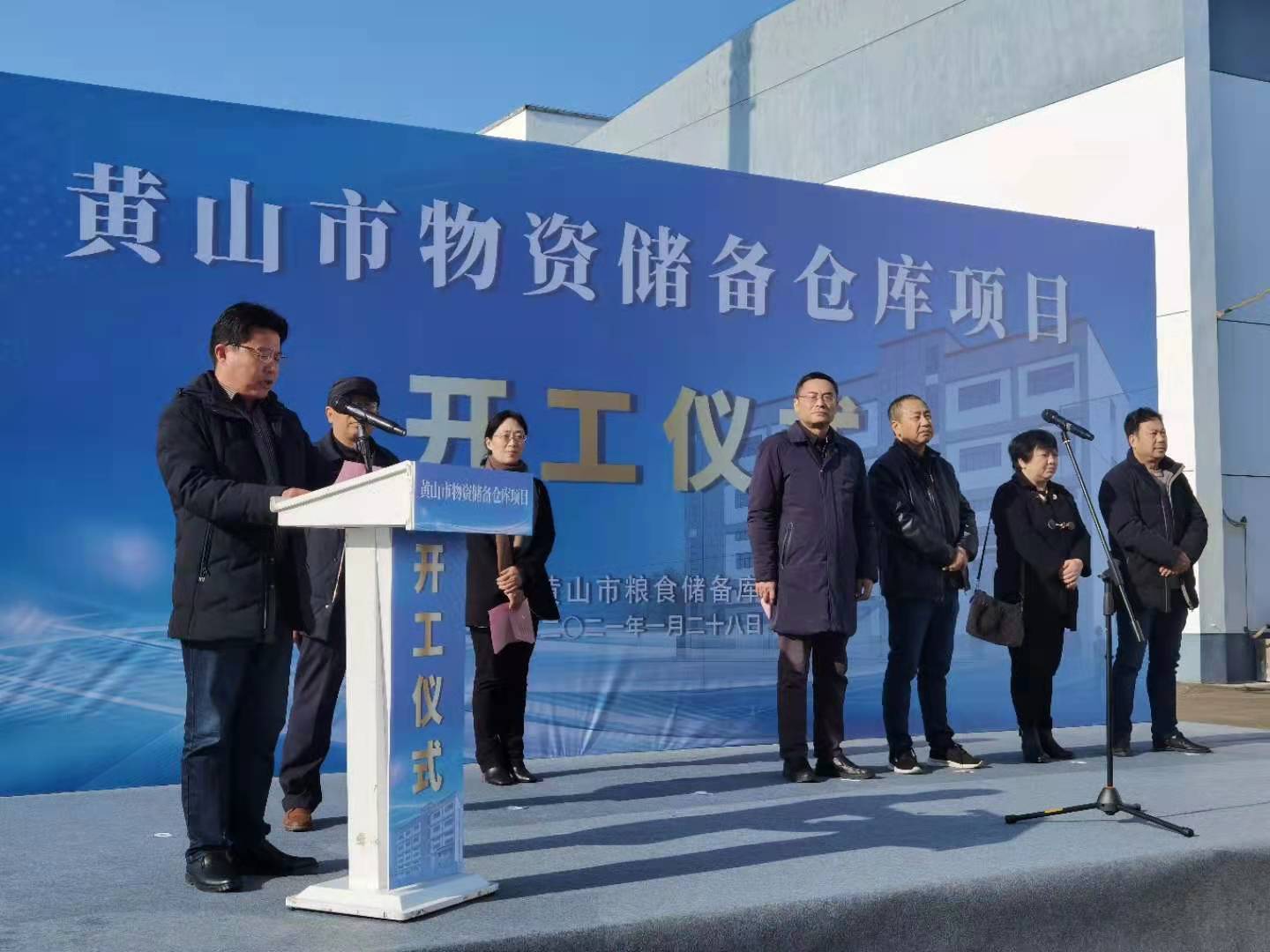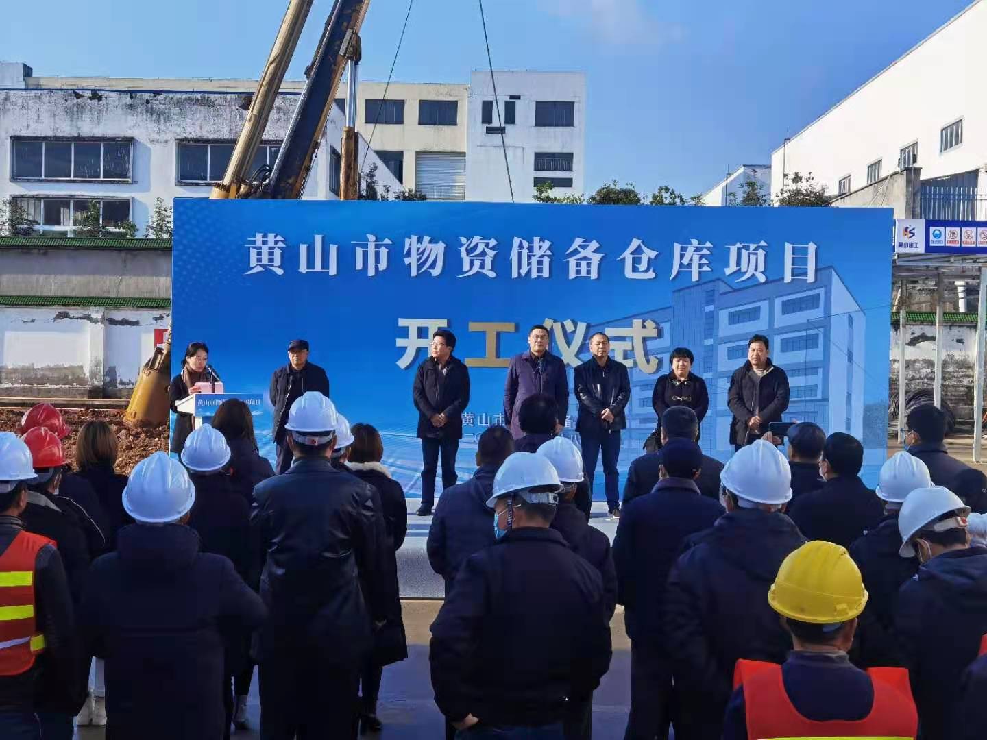 2021年1月28日上午9:30,黄山市物资储备库项目开工奠基活动在九龙工业园区项目地举行,省粮食和物资储备局物资和能源储备处处长孙安庆、四级调研员何薇、市发展改革委(市粮食储备局)主任(局长)丁士礼、建设单位主要负责人、华体会体育官方网站-华体会体育(中国) 总经理叶金发等相关单位负责人参加了奠基仪式。