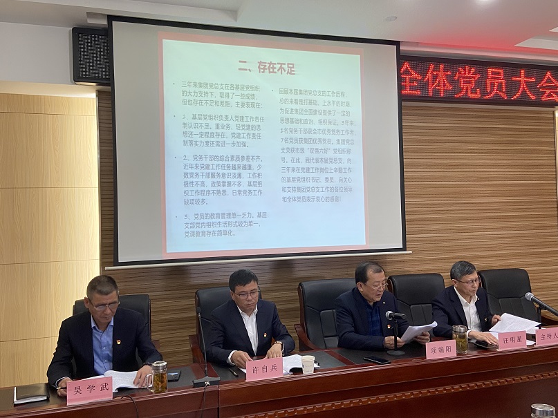 根据《中国共产党章程》和《中国共产党基层组织选举工作暂行条例》有关规定,按照市住建局机关党委的要求,集团公司于2023年 3 月 13日下午在本部11楼会议室召开全体党员大会。集团总党支书记项端阳、总支委员许自兵、叶金发、吴学武、汪明星等出席了此次会议。会议由总支副书记汪明星同志主持。