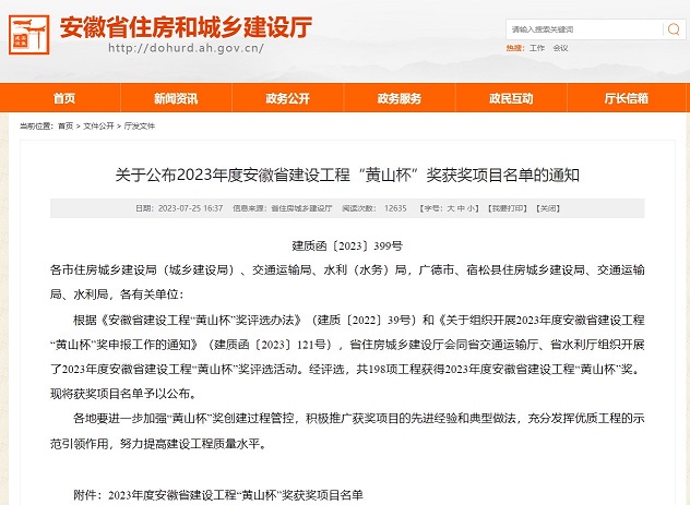 7月25日,省住建厅公布2023年度安徽省建设工程“黄山杯”奖获奖项目名单,黄山建工承建的黄山职业技术学院风雨操场项目工程位列榜单、喜获殊荣。