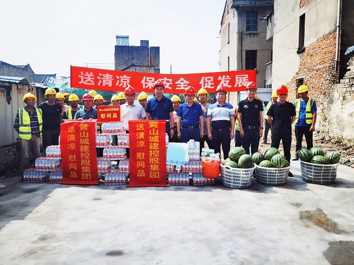 烈日炎炎,气温居高不下。为保障项目职工安全健康权益,确保项目安全生产平稳推进,8月10日上午,黄山城投城建控股有限公司总经理汪国文等一行赴宁国市河沥文化街区EPC项目工地开展走访调研暨“夏送清凉”慰问活动。华体会体育官方网站-华体会体育(中国) 股份有限公司董事长项端阳、总经理叶金发、副总经理吴学武陪同调研慰问。