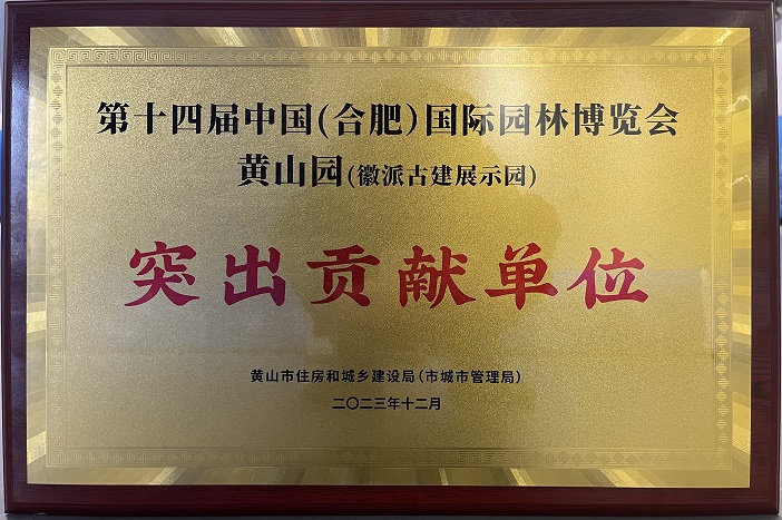 12月18日下午,中国(黄山)第三届徽派古建产业发展大会古建产业高质量发展推进会·新安茶会举行。推进会上颁发了第十四届中国(合肥)国际园林博览会黄山园(徽派古建展示园)“突出贡献单位”奖项,作为黄山园项目参建单位之一的华体会体育官方网站-华体会体育(中国) 再获殊荣。