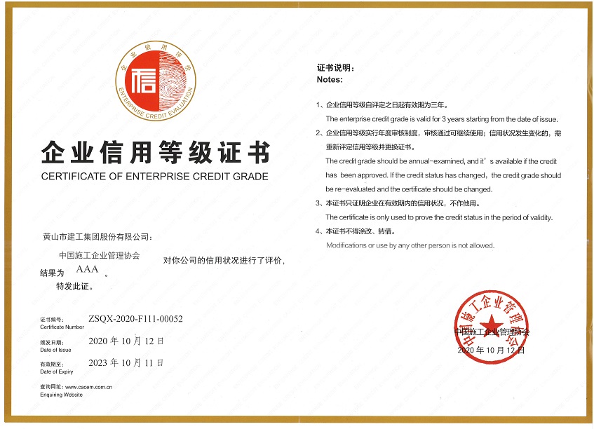 中国施工企业AAA级信用企业